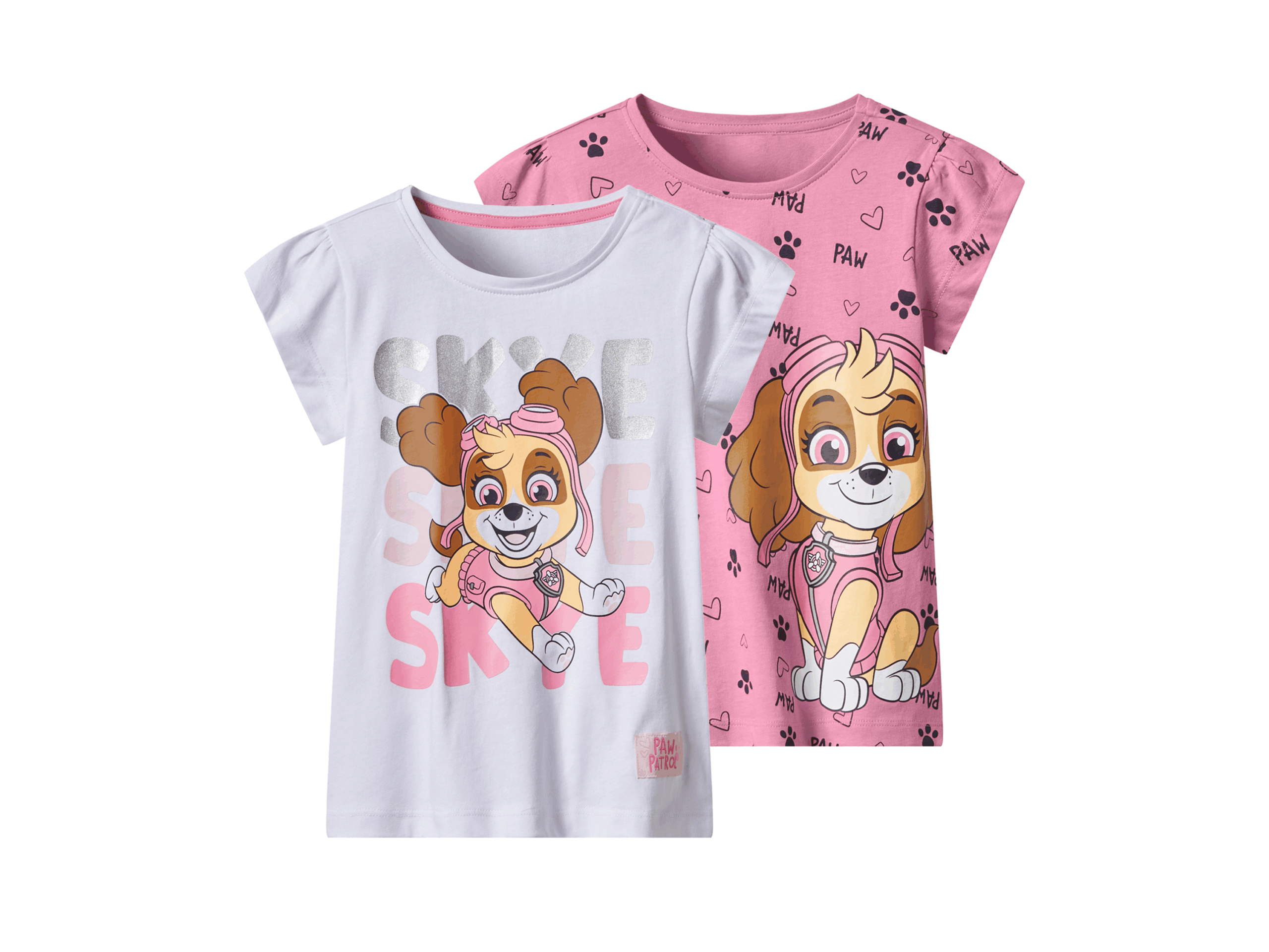 2 Kinder T-shirts Paw Patrol (Roze/wit, 122/128)