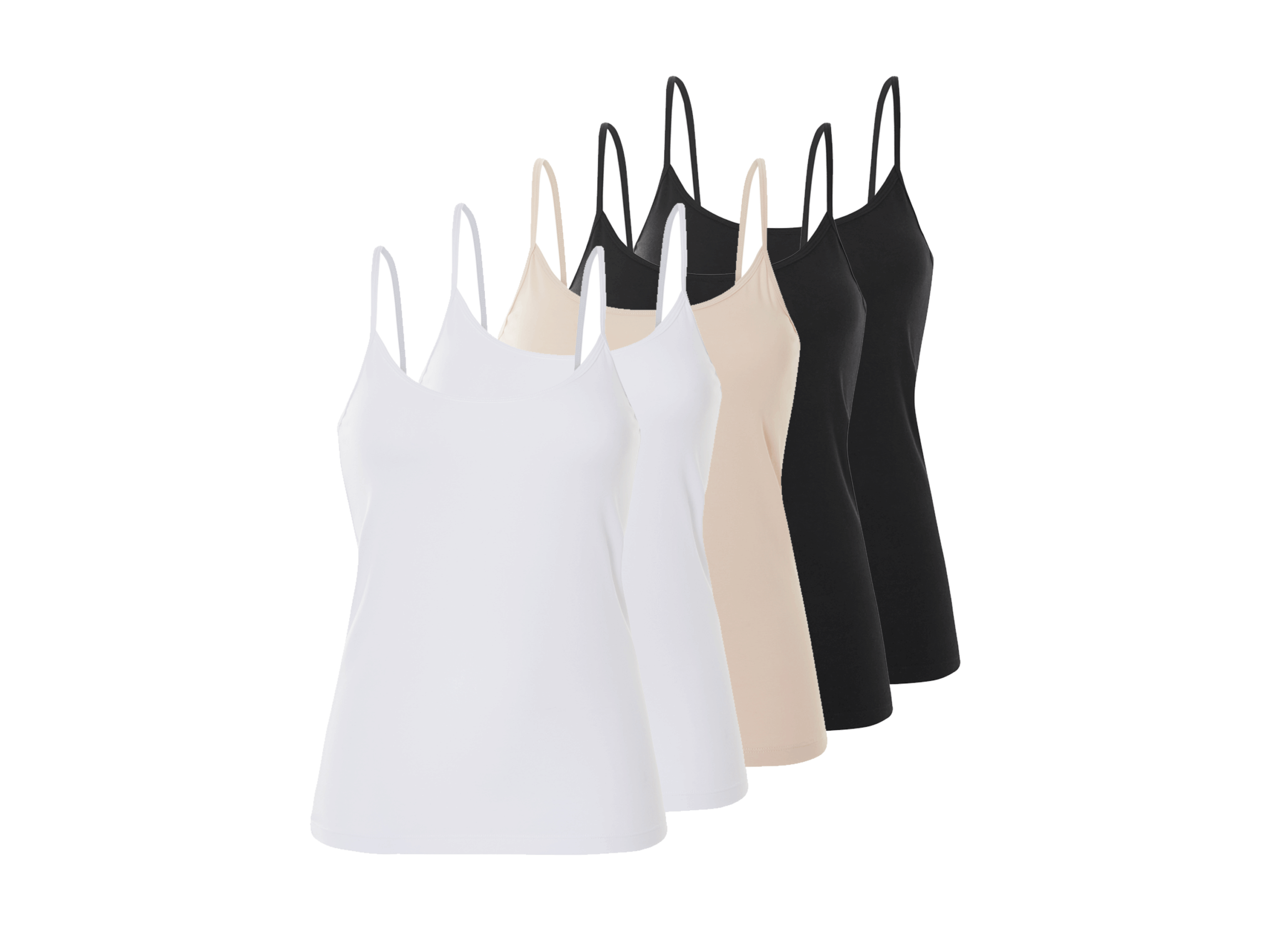 Wij steunen de duurzame katoenteelt in Afrika Optimale pasvorm dankzij elastaan (Lycra®) Productkenmerken table{width:100%;}td{padding-right: 30px; padding: 0.5rem; border-bottom: 0.0625rem solid #e3e4e5;} tr:nth-child(odd) {background-color: #F2F3F4;} Kleur: beige/zwart/wit Patroon: nee Snit: strak Decolleté: Ronde hals Multipack: 5 stuks Materiaal: 95 % katoen, 5 % elastaan (Lycra®) Wasvoorschrift: wassen op max. 40 °C niet bleken voorzichtig drogen in de droger op max. 60 °C strijken tot 150 °C (stand 2). Stoomstrijkijzer kan worden gebruikt niet chemisch reinigen Maat: Xs(32/34) – Xl(48/50)