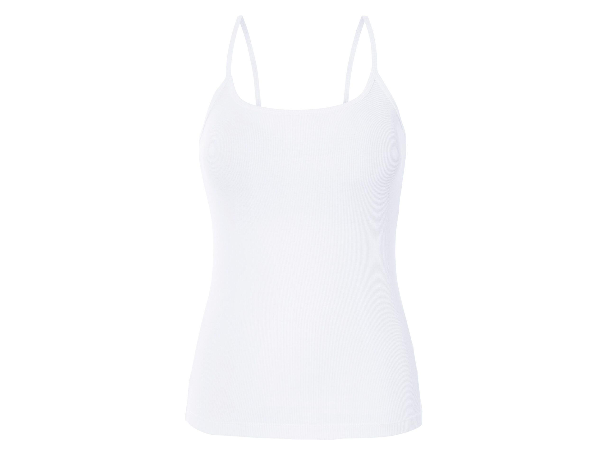 Met biologisch katoen In modieus ribmateriaal Optimale pasvorm dankzij het elastaan Lycra® Productkenmerken table{width:100%;}td{padding-right: 30px; padding: 0.5rem; border-bottom: 0.0625rem solid #e3e4e5;} tr:nth-child(odd) {background-color: #F2F3F4;} Kleur: zwart, wit Patroon: – Detail: met biologisch katoen; ribmateriaal Bandjes: Spaghettibandjes Decolleté: Ronde halslijn Multipack: – Materiaal: 95 % katoen (biologisch), 5 % elastaan (Lycra®) Wasvoorschrift: wassen op max. 40 °C niet bleken voorzichtig drogen in de droger op max. 60 °C strijken tot 150 °C (stand 2). Stoomstrijkijzer kan worden gebruikt niet chemisch reinigen Maat: XS (32/34) – L (44/46)