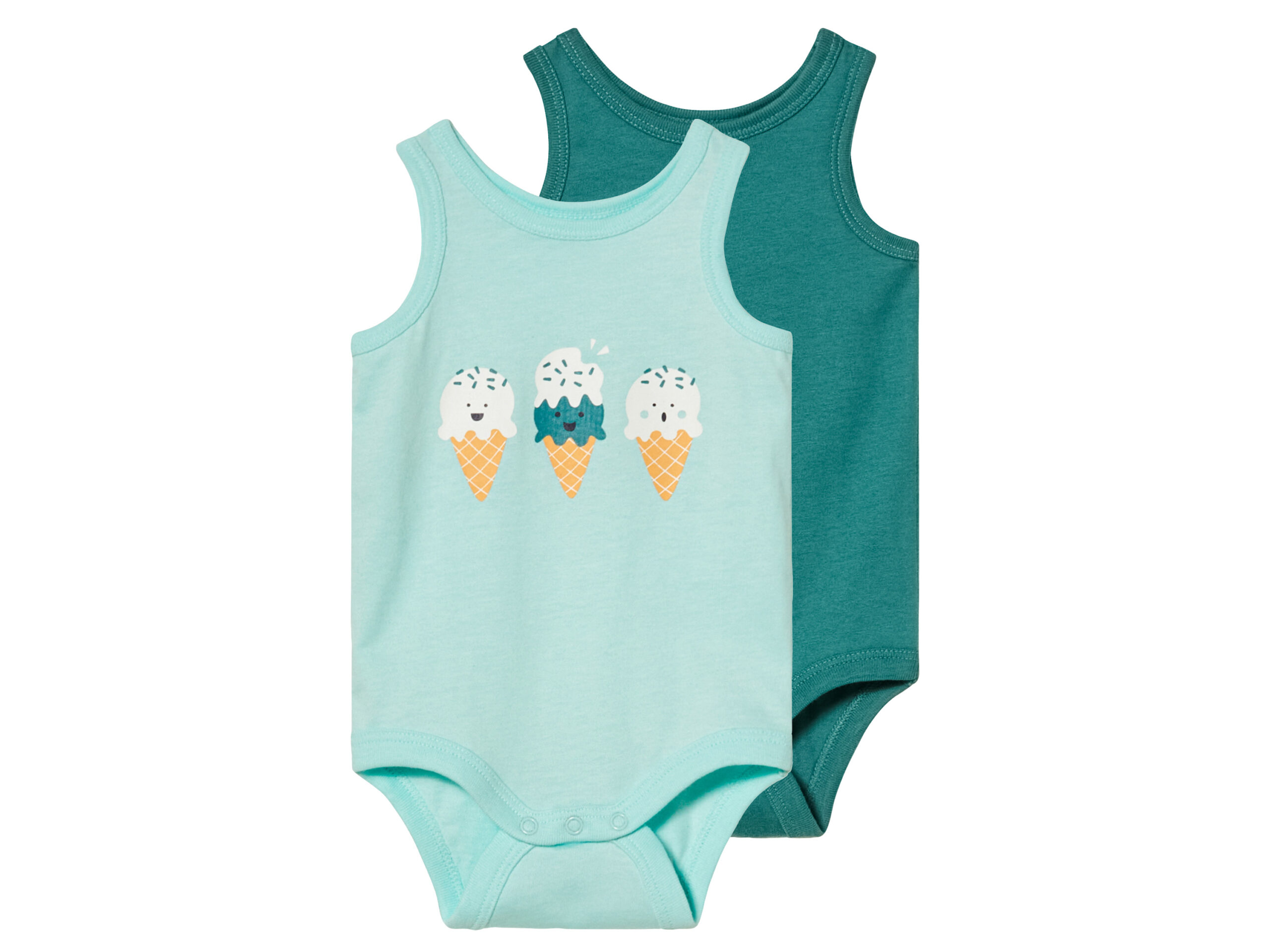 Wij ondersteunen de duurzame katoenteelt in Afrika Aangenaam draagcomfort door zuiver katoen Slipkraag en kruisknopen voor gemakkelijk aan- en uittrekken 2 stuks Kleuren: lichtblauw/navy, mint/petrol Materiaal 100 % katoen Onderhoudsinstructies Wassen op max. 60 °C Niet bleken Voorzichtig drogen in de wasdroger op max. 60 °C Strijken tot 150 °C (stand 2). Stoomstrijkijzer kan gebruikt worden Niet chemisch reinigen Maten 50/56 – 86/92