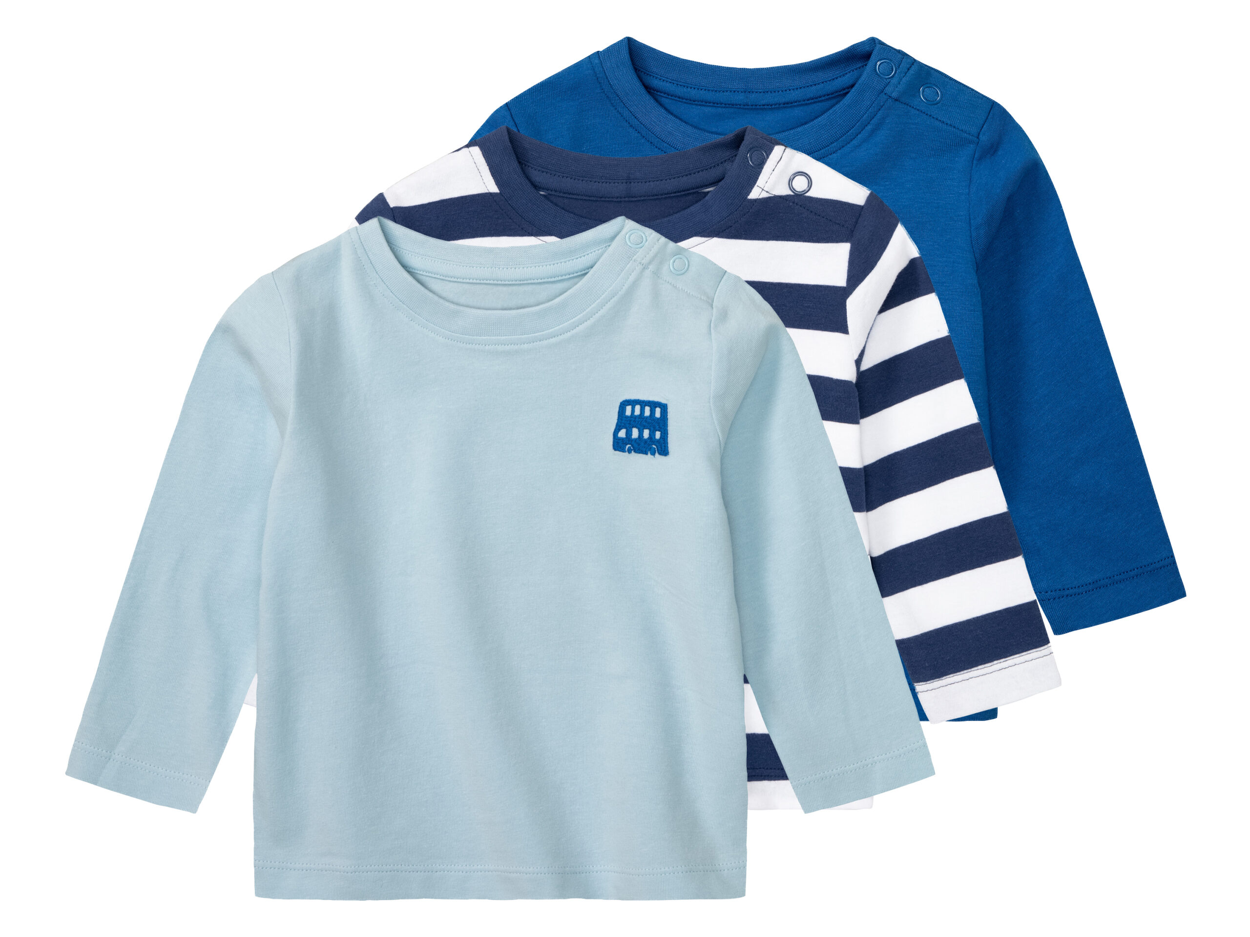 lupilu 3 baby shirts (62/68, Strepen/blauw/lichtblauw)
