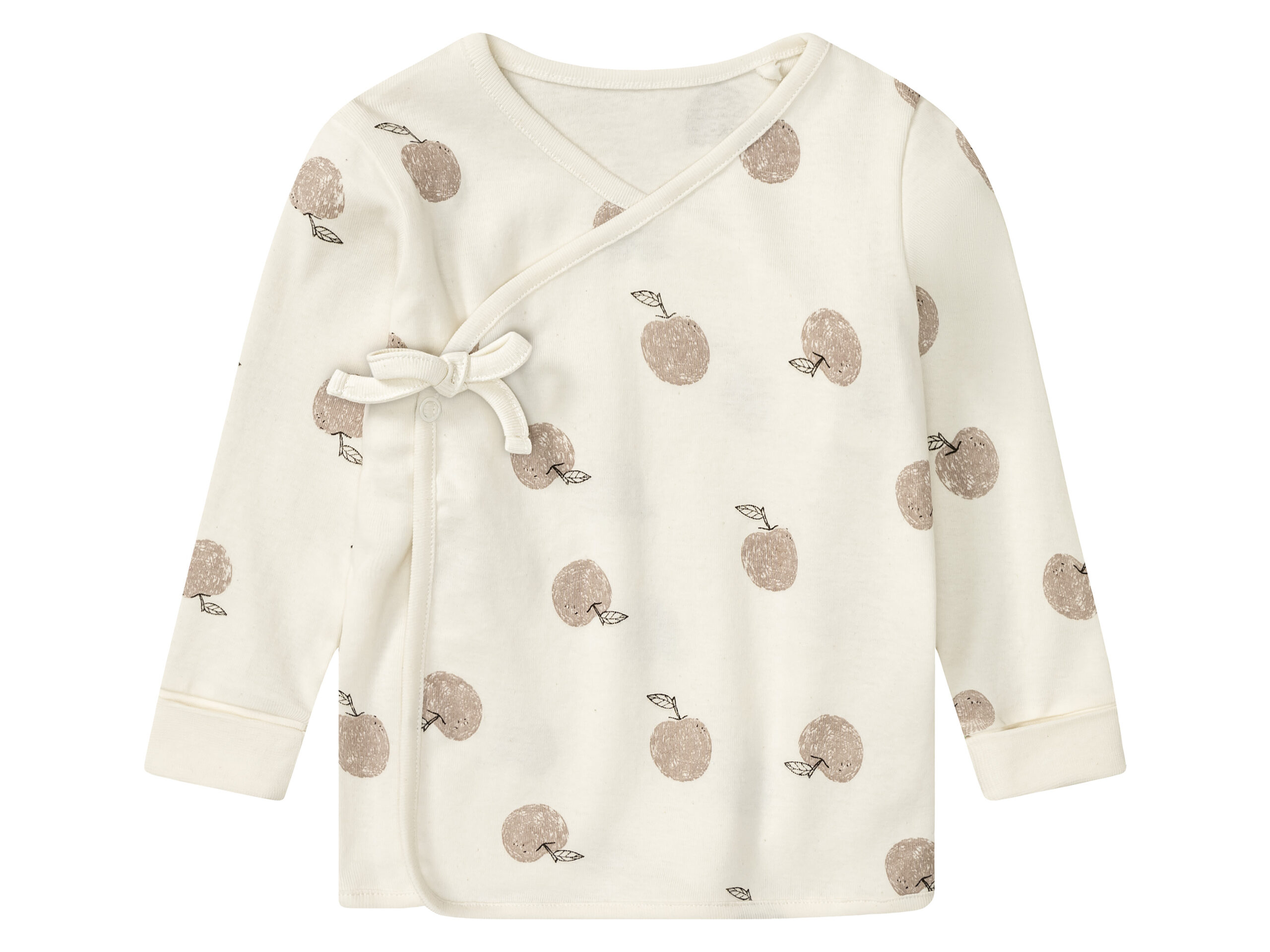 Natuurlijk draagcomfort door zuiver bio-katoen Met praktische drukknopen voor gemakkelijk aan- en uittrekken Kleuren: beige, mint, wit Wit: ecoprint – 100% ecologische textieldruk Met schattige allover-print Materiaal 100% katoen Onderhoudsinstructies Wassen op max. 60 °C Niet bleken Voorzichtig drogen in de wasdroger op max. 60 °C Strijken tot 150 °C (stand 2). Stoomstrijkijzer kan gebruikt worden Niet chemisch reinigen Maten 50/56 – 86/92