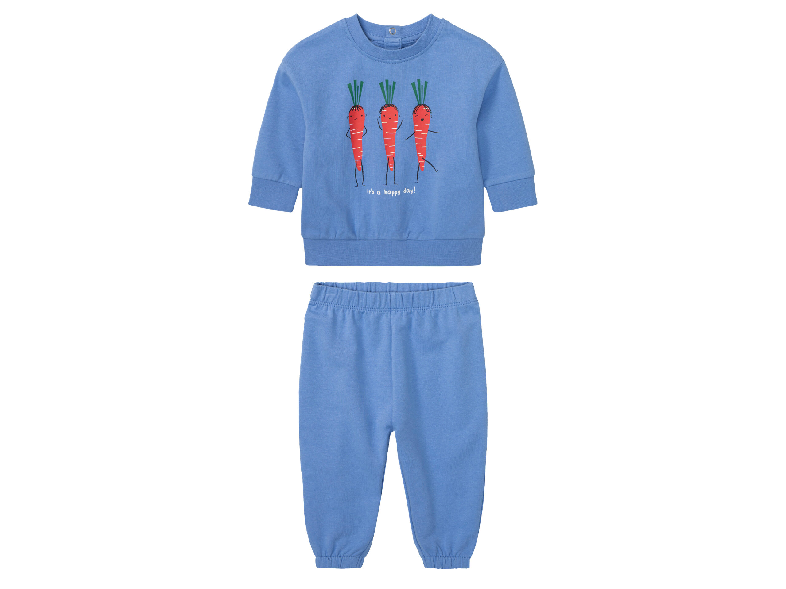 Met bio-katoen Natuurlijk draagcomfort door hoog bio-katoengehalte ecoprint – 100 % ecologische textieldruk Met praktische rugknoop voor gemakkelijk aan- en uittrekken Met schattige print Elastische ribboorden aan de halslijn, mouwen en tailleband Broek met elastische tailleband Optimale pasvorm dankzij het elastaan Lycra® 2-delig Kleuren: blauw, grijs Materiaal 95 % katoen, 5 % elastaan Onderhoudsinstructies Wassen op max. 40 °C Niet bleken Voorzichtig drogen in de wasdroger op max. 60°C Strijken tot 150 °C (stand 2). Stoomstrijkijzer kan gebruikt worden Niet chemisch reinigen Maten 50/56 – 86/92