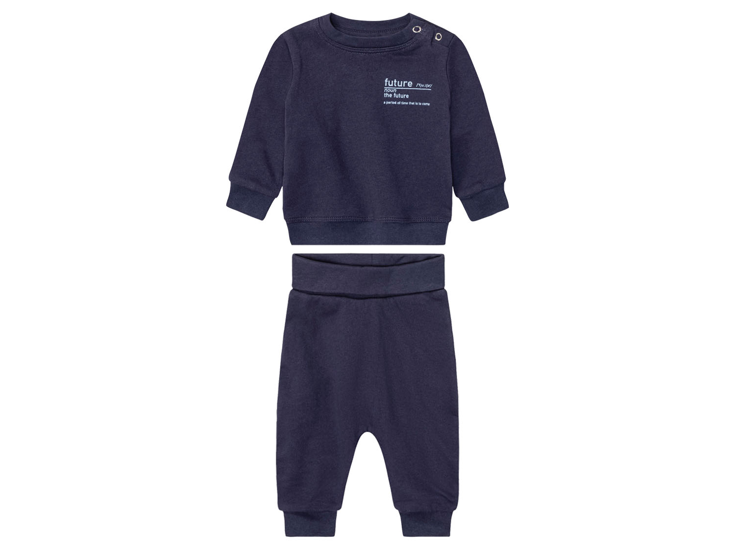 Milieuvriendelijke productie Geproduceerd onder veilige en sociaal aanvaardbare arbeidsomstandigheden Aangenaam draagcomfort door hoog katoengehalte Pullover met praktische schouderknoopsluiting en ronde hals Broek met comfortabele omslagband voor hoog draagcomfort Zachte French-Terry-kwaliteit Kleuren: blauw, lila, marine, oranje Materiaal 80 % katoen, 20 % polyester Onderhoudsinstructies Wassen op max. 40 °C (onderhoudsvriendelijk) Niet bleken Voorzichtig drogen in de wasdroger op max. 60°C Strijken tot 150 °C (stand 2). Stoomstrijkijzer kan gebruikt worden Niet chemisch reinigen Maten 50/56 – 86/92