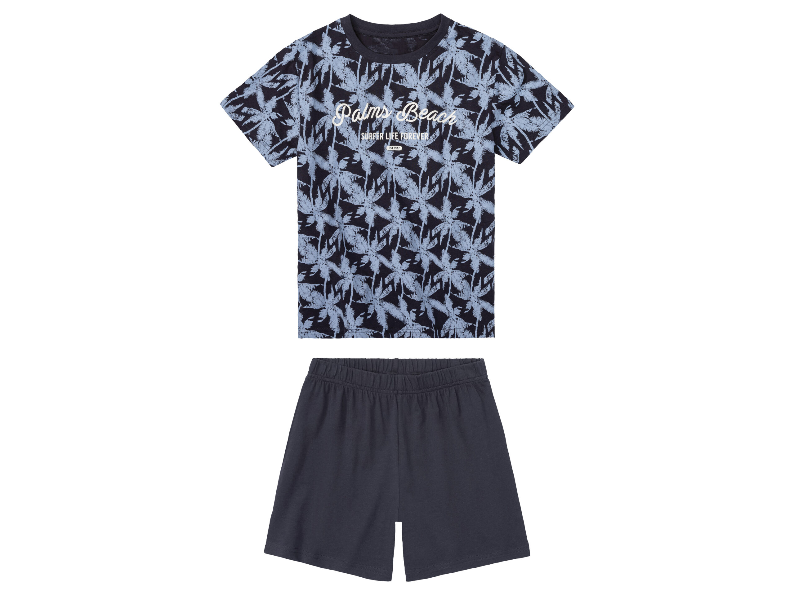 Natuurlijk draagcomfort door zuivere bio-katoen Shirt met ronde hals en print Short met comfortabele elastische tailleband Kleuren: blauw/navy, navy Materiaal 100 % katoen Onderhoudsinstructies Wassen op max. 40 °C Niet bleken Voorzichtig drogen in de wasdroger op max. 60°C Strijken tot 150 °C (stand 2). Stoomstrijkijzer kan gebruikt worden Niet chemisch reinigen Maten 134/140 – 158/164