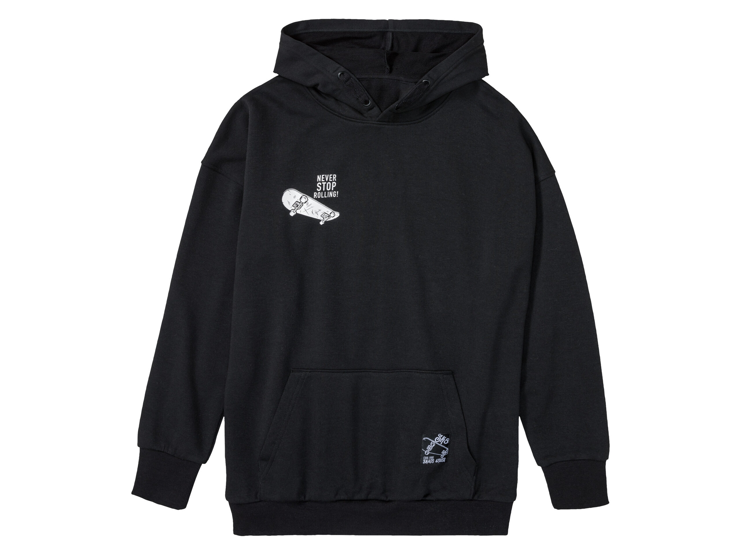 Wij ondersteunen de duurzame katoenteelt in Afrika Aangenaam draagcomfort door hoog katoengehalte Met capuchon Boorden aan mouw- en zoomuiteinde Kleuren: grijs, petrol, zwart Grijs: met kangoeroezak Patroon: met coole print Zwart: Kangoeroezak met casual patch Met coole print op de voor- en achterkant Materiaal 80 % katoen, 20 % polyester Onderhoudsinstructies Wassen op max. 40 °C Niet bleken Drogen zonder hitte Strijken tot 150 °C (stand 2). Stoomstrijkijzer kan gebruikt worden Niet chemisch reinigen Maten 134/140 – 158/164