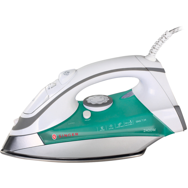 De SNG 7.24 Stoomstrijkijzer van Singer heeft een vermogen van 2400Watt en is voorzien van een RVS zool in geborsteld staal. Deze stoomstrijkijzer heeft een constante stoom afgifte tot 30 gr/min en een stoomstoot functie van 160 gr/min voor het verwijderen van hardnekkige kreukels. Met de verticale stoomfunctie kan je eenvoudig kledingstukken zoals bijvoorbeeld kostuums, bloezen of gordijnen gemakkelijk aan een kleerhanger opstrijken. Het open stijkijzerpunt zorgt voor het optimaal strijken van zomen en rondom overhemdknopen. Verder is deze strijkijzer uitgerust met een zelfreinigend systeem, druppelstop en een anti-kalksysteem. Dankzij de 360 graden draaibare snoerbevestiging heb je met deze strijkijzer nog meer bewegingsvrijheid.